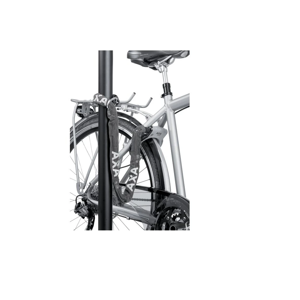 Der AXA Defender lässt sich auf verschiedene Weisen anbringen. Standardmäßig wird das Schloss mit dem flexiblen Befestigungsset montiert, das auf jedes Rahmenrohr anwendbar ist, es kann aber auch mit einer Schraube von oben befestigt werden.