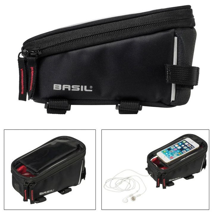 Deine Basil Rahmentasche Sport fasst 1 Liter und ist ideal zur geschützten Aufbewahrung Deines Schlüssels, Portemonnaies und Smartphones geeignet. Letzteres kannst du in der oben liegenden, transparenten Tasche verstauen und durch die Folie hindurch weiterhin bedienen. Möchtest du während Deiner Fahrt Musik hören, ist das kein Problem: die Tasche besitzt eine Öffnung, durch die du deinen Kopfhöreranschluss einführen kannst. Dank der Regenhülle musst Du Dich bei einem Regenschauer nicht um Deinen Habseligkeiten sorgen – sie sind sicher verpackt.