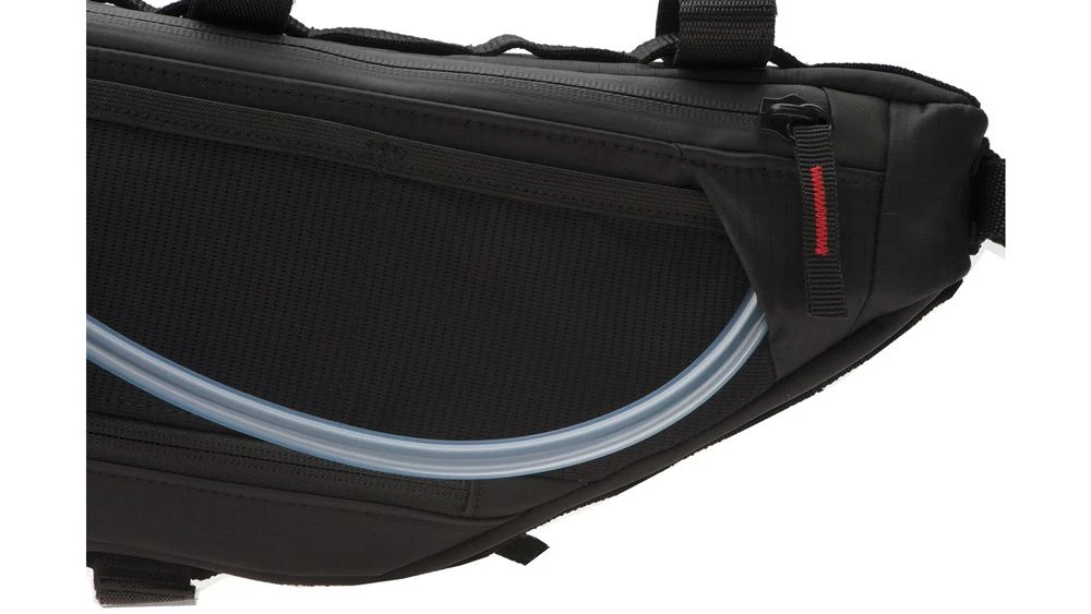 Sie besitzt wasserdichte Nähte und eine Öffnung für einen Trinkschlauch oder Elektrokabel. Mit 402 g ist sie sehr leicht. Du bringst sie mit den mitgelieferten Befestigungsbändern einfach am Rahmen deines Rads an.