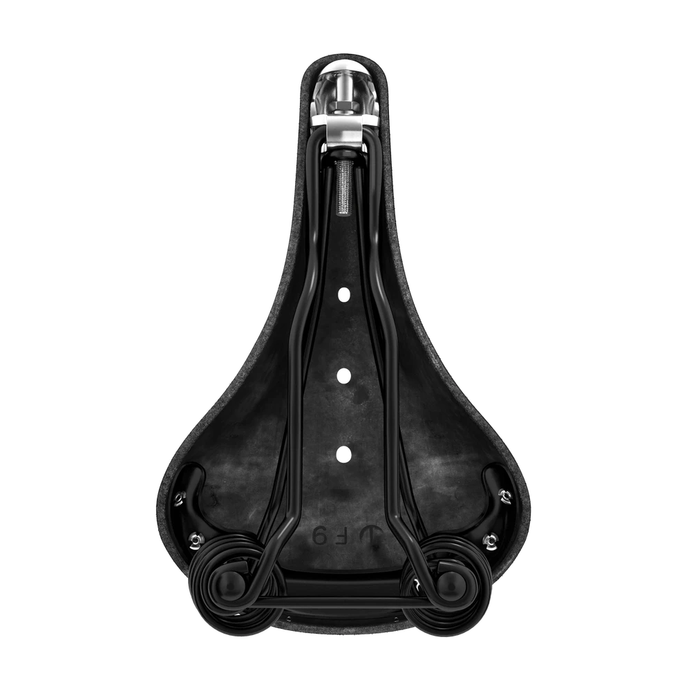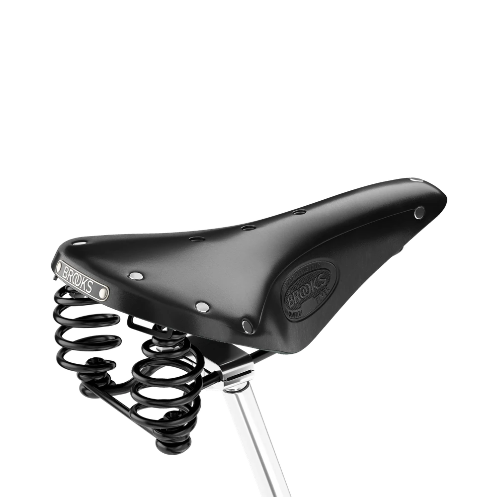Der Flyer ist ein Tourensattel mit Federung auf der Basis des Klassikers Brooks B17. Der Flyer ist ein perfekter Sattel für Abenteuerradsport, zum Commuten und für Langstreckentouren. Der Flyer hat das gleiche Lederoberteil wie das B17-Modell und kombiniert klassischen Lederkomfort mit zusätzlicher Federung. Der Flyer, eines von Brooks beliebtesten Modelle, wird im Brooks Werk in Smethwick, England von Hand gefertigt und serienmäßig mit Stahlrohrnieten und einem schwarzen, pulverbeschichteten Untergestell geliefert.