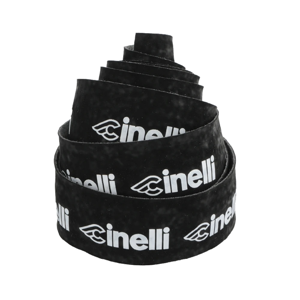 Mehr Sicherheit, mehr Farben, mehr Design: Das Cinelli-Logo-Muster auf schwarzem Samtband.