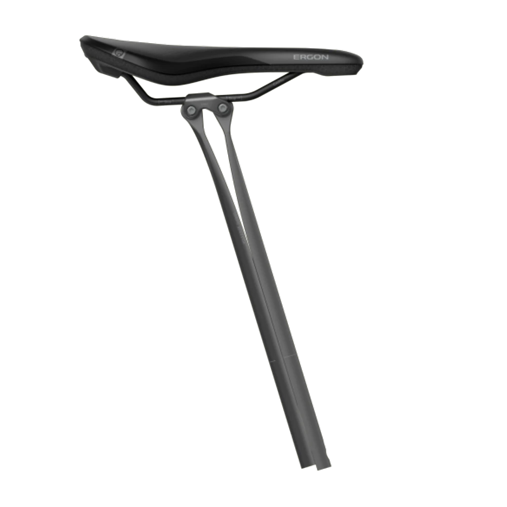 Einzigartiger Komfort, leicht, ästhetisch-modern: Die Ergon-Blattfeder-Sattelstütze revolutioniert mit ihrem genialen Funktionsprinzip den Sitzkomfort auf Rennrad, Allroad- und Gravelbike. Rauer Untergrund und Schotter werden von den beiden VCLS-Blattfedern aus Carbonfaser-Composite glattgebügelt, dabei bleibt die Sattelneigung durch die Parallelverschiebung der beiden Blattfedern und den schwimmend gelagerten Flip Head stets unverändert. Die straffen, hochsensibel abgestimmten Blattfedern arbeiten derart definiert, dass sie die volle Rennrad-Performance nicht beeinträchtigen.