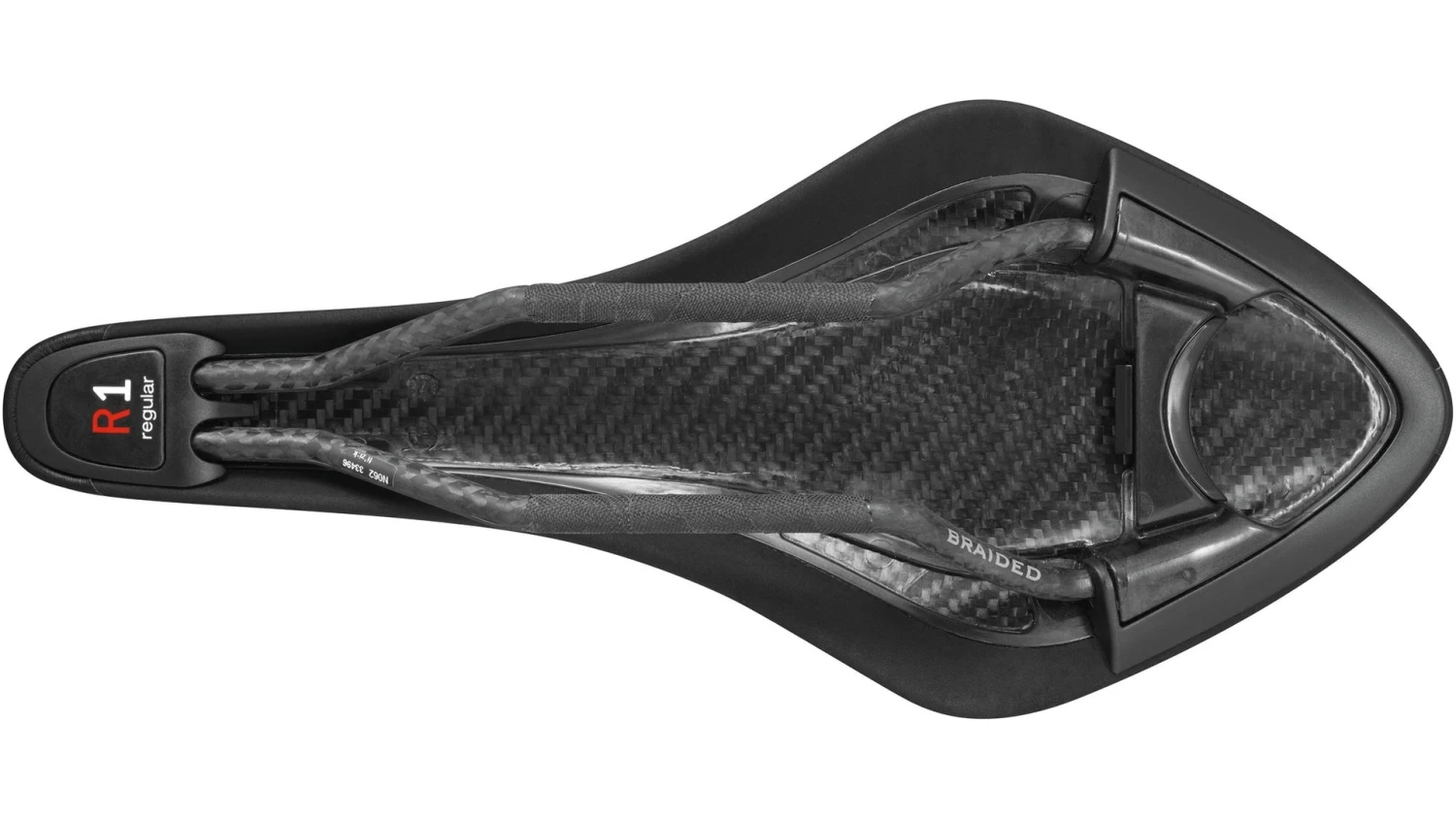 Ein flacher Rennradsattel mit co-injizierter Carbonschale, Wing Flex Technologie und Braided Carbon Schiene, der das Beste für diejenigen bietet, die Leichtigkeit und Flexibilität verlangen.