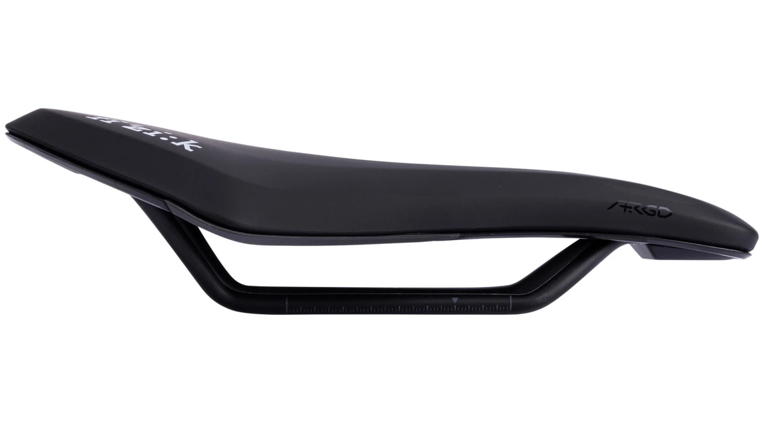 Ein Gravel-spezifischer Sattel mit einer kurzen Nase und einer Kombination aus einer fahrtüchtigen, kohlefaserverstärkten Nylonschale und einem S-Alloy-Gestell.