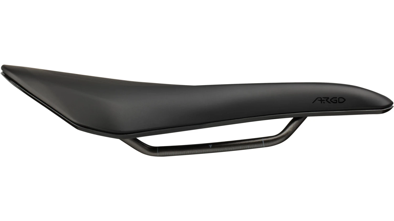 Ein Short Nose Fahrradsattel mit einer Kombination aus einer fahrtüchtigen, kohlenstoffverstärkten Nylonschale und einem Kium-Hohlprofil mit hohem Festigkeits-Gewichts-Verhältnis.
