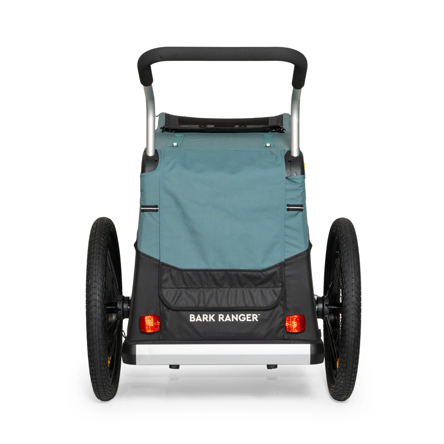Der Bark Ranger Fahrradanhänger für Haustiere und Kinderwagen ist jederzeit und überall einsatzbereit – genau wie dein vierbeiniger Liebling. Diese für den ultimativen Haustierkomfort konzipierte Kombination aus Hundekinderwagen und Fahrradanhänger bietet einen geräumigen Innenraum, Außentaschen zum Verstauen von Leinen und Leckerlis, Mesh-Fenster für eine luftige Belüftung und eine große Heckklappe mit geringer Bodenfreiheit für einfaches Be- und Entladen. Ausgestattet mit mehreren aufrollbaren Reißverschlüssen und Paneelen und einer integrierten Feststellbremse, die für Stabilität sorgt, kannst Du dir sicher sein, dass dein bester Freund gut gesichert ist. Der Bark Ranger fasst Haustiere bis zu 75 Pfund, der Bark Ranger™ XL für große Hunde bis zu 100 Pfund. Mit den zusätzlichen Stauraummöglichkeiten des Pet Ranger kannst Du für einen ganzen Tag voller Abenteuer packen. Anhängers Tasche und Bark Ranger™ Tasche. Nach dem Ausflug kannst Du den Boden des Anhängers herausnehmen, um ihn leicht zu reinigen, oder den Bark Ranger-Anhänger zusammenklappen, um ihn bis zum nächsten Abenteuer kompakt zu verstauen.