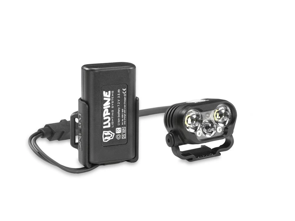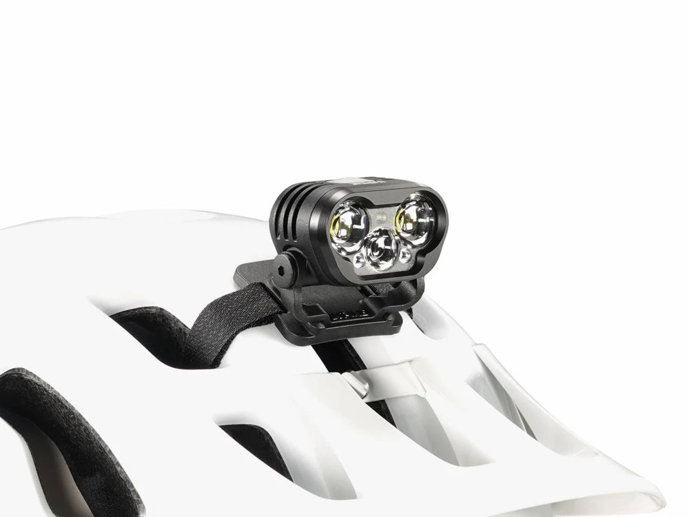 Die Blika als Helmlampe mit 2400 Lumen für Helme mit Lüftungsschlitzen. Das FrontClick System erlaubt einen schnellen Wechsel des Lampenkopfes auf einen anderen Helm oder ein anderes Stirnband. Der Akku wird per FastClick System direkt am Helm getragen und kann ebenfalls mit wenigen Handgriffen gewechselt werden.