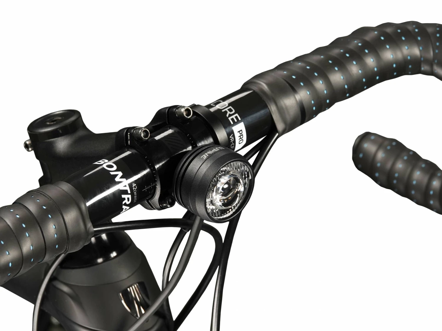beiliegenden beschichteten Klettband am Ober- oder Unterrohr des Rahmens befestigt. Die Lampe schaltet