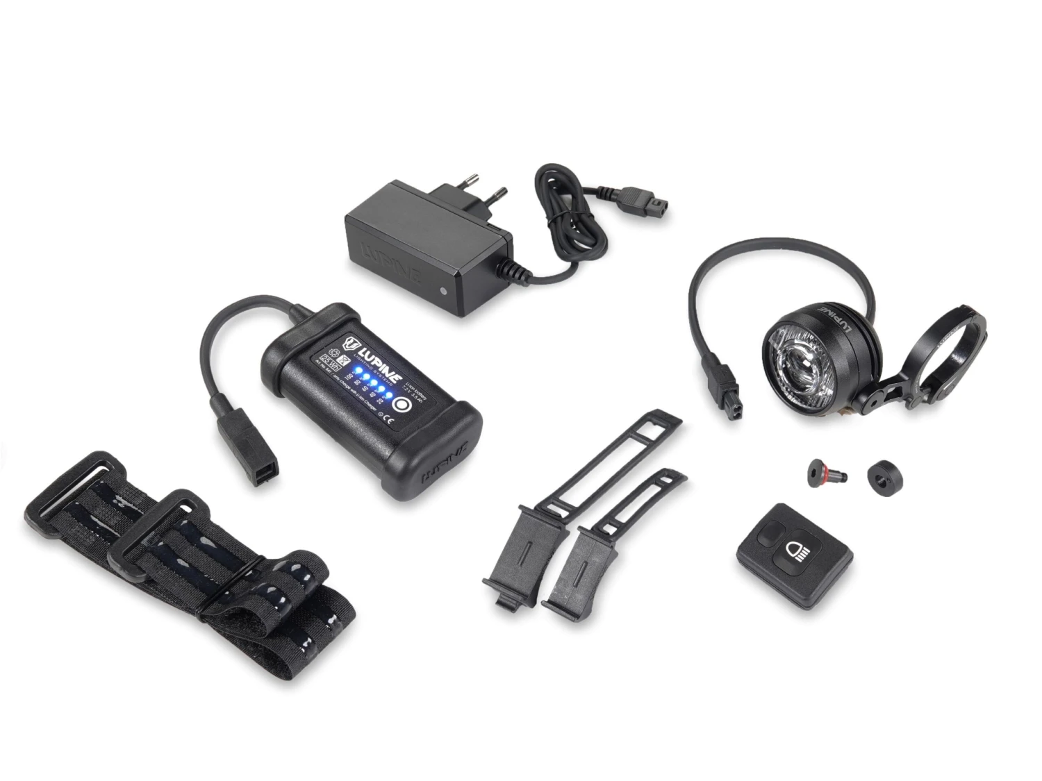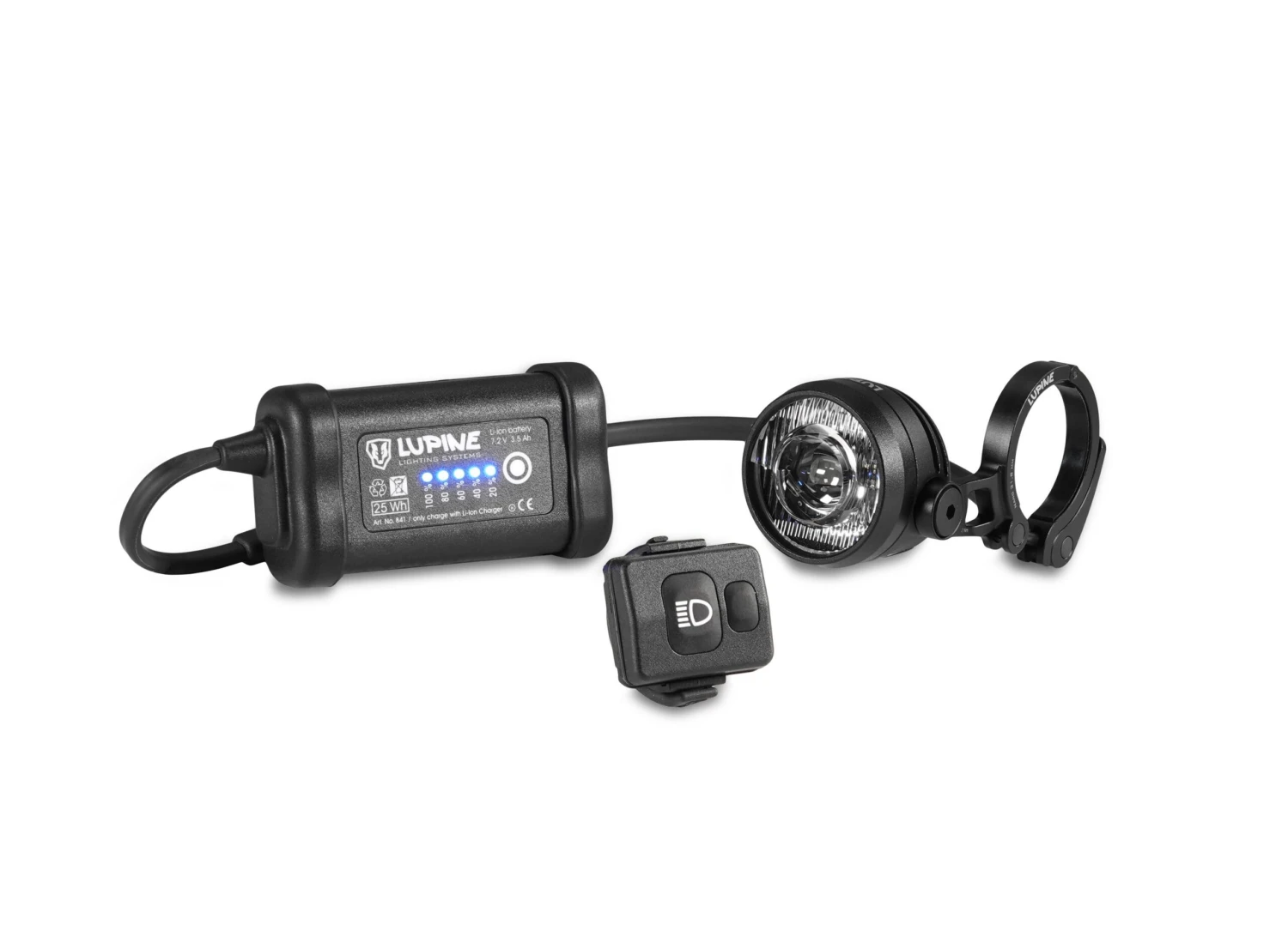 Abblendlicht, Tagfahrlichtfunktion, externem Akku und Bluetooth-Fernbedienung.
