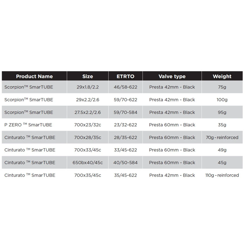 Der SmarTUBE ist Pirellis neuestes Produkt. Seit Jahrzehnten setzen sie ihr Know-How in der Entwicklung von High-Performance Reifensystemen ein. Ein Fahrradschlauch der mit der Leistung unserer High-End Reifen mithalten kann ist die logische Konsequenz. Er ist das Ergebnis ihrer Zusammenarbeit mit den Spitzensportlern aus der UCI World Tour. Pirellis Ziel war es die Anforderungen der Sportler in ein alltagstaugliches Produkt zu übertragen. Mit dem SmarTUBE ist das gelungen. Der SmartTUBE besteht aus einem thermoplastischen Polyurethan (TPU) und ist bis zu 70 % leichter, als ein herkömmlicher Butyl-Schlauch. Zudem ist er bis zu 50% platzsparender. Darüber hinaus ist der SmarTUBE extrem strapazierfähig und belastbar.