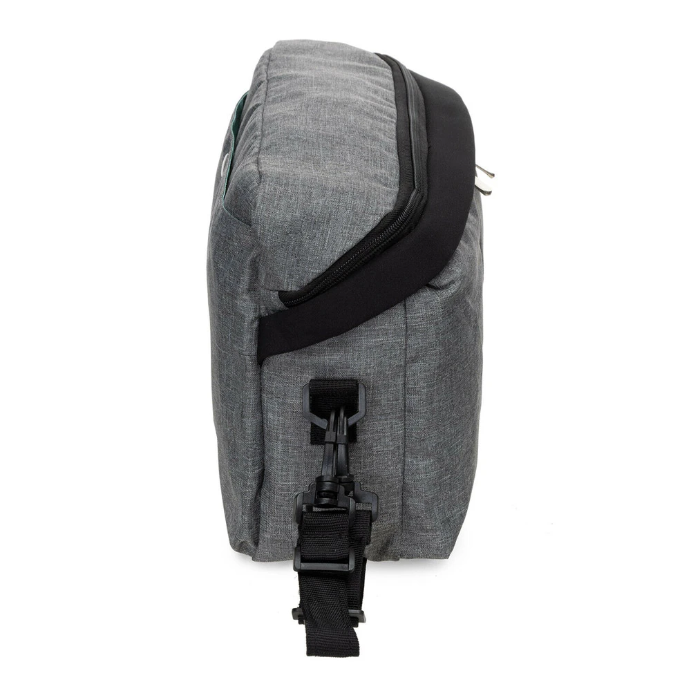 Die Tasche besitzt mehrere Fächer mit Reißverschluss. So behältst du bei viel Gepäck immer den Überblick und nichts geht verloren. Der robuste Stoff macht auch turbulente Touren mit und sieht dabei gut aus: grau meliert mit schwarzen Details passt Deine Tasche zu allem.