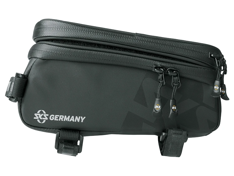 Strapazierfähige Materialien aus gummiertem, wasserabweisendem Gewebe machen die Fahrradtasche EXPLORER SMART zu einem Muss für jeden Mountainbiker. Besonders praktisch ist das obere Handyfach mit integrierter Kabeldurchführung für Kopfhörer. Durch die transparente Schutzfolie lässt sich das Smartphone bequem bedienen. Das darunter befindliche Extrafach ist perfekt für die Unterbringung einer flachen Powerbank, mit der das Smartphone während der Fahrt geladen werden kann.
