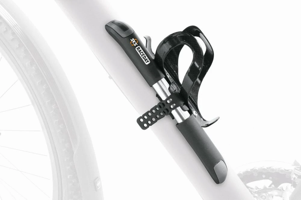 Die praktische Griff-Verriegelung sorgt dafür, dass die Pumpe optimal in der mitgelieferten Halterung steckt. Diese kann unter oder anstelle einer Flaschenhalterung montiert werden.