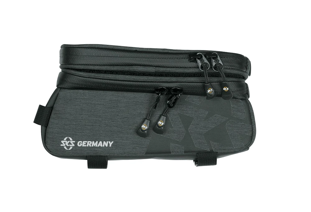 Dank der Klett-Unterseite kann die Handytasche einfach abgenommen werden. Mit robusten, gummierten Klettverschluss-Halterungen wird die Tasche gut erreichbar am Oberrohr befestigt. Zur Ausstattung gehören ebenfalls laminierte, wasserdichte Reißverschlüsse mit ergonomischem EASYZIP, übersichtliche Innentaschen und orangefarbenes Innenfutter zum leichteren Finden der Utensilien.