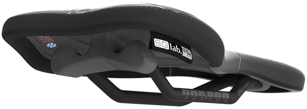 - TIEF UND FLACH: Die flache nur sehr leicht gewölbte Form der Sattelnase ergibt eine maximale Kontaktfläche mit dementsprechend wenig Druck. Dadurch ist die Nase gleichzeitig sehr schmal und die seitliche Reibung während der Tretbewegung wird auf ein Minimum reduziert. Diese SQlab MaxContact® genannte Form hat sich auch bereits bei einigen anderen Racemodellen bewährt und wurde für die Ergowave® Serie noch konsequenter umgesetzt.