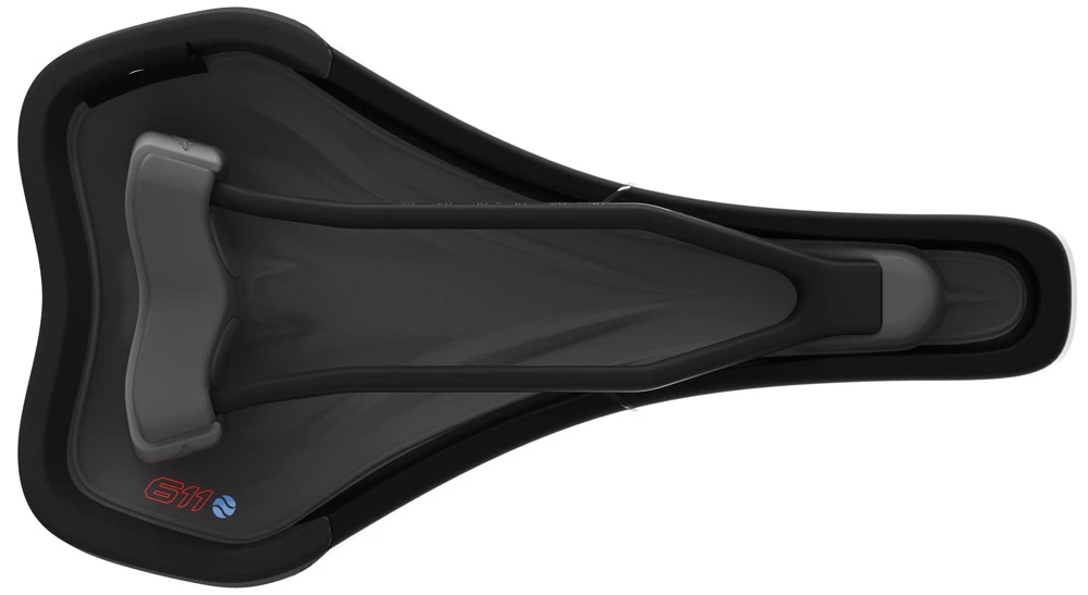 In Kombination mit der Vertiefung in der Mitte schafft die tieferliegende Nase mehr Platz und Freiraum für den Dammbereich. Gerade bei längeren Anstiegen im Gelände wurde die Sattelnase beim 611er im Vergleich zum 612er für eine noch bessere Druckentlastung um ca. 4mm breiter gestaltet. Dabei ist sie jedoch genauso flach und mit möglichst großer Auflagefläche konzipiert.