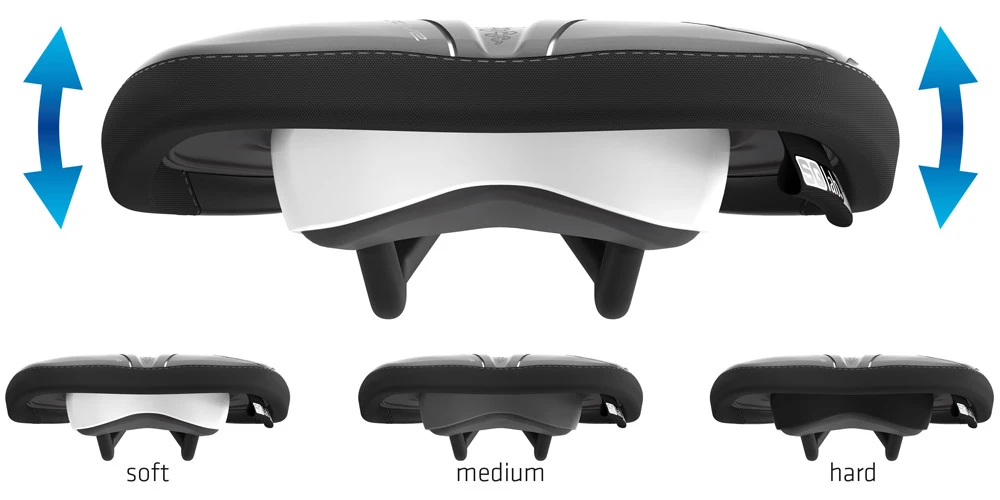 passende Sattelbreite nach Deinen individuellen Maßen. Nicht genug der Individualität: Die Elastomere des Active-Systems kannst Du auf Dein Körpergewicht anpassen und einfach Austauschen. Es stehen die Varianten soft (bis 70 kg), medium (bis 80 kg) und hard (80-100 kg) zur Auswahl. Wir wünschen viel Spaß und tolle Rennen mit Deinem SQlab Ergowave Sattel!