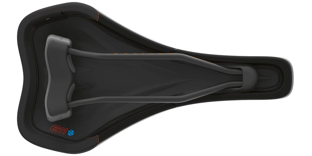 Durch die wellenartige Form und das hochgezogene Heck sorgt der Sattel für einen perfekten Halt nach hinten. Es entsteht eine optimale Druckverteilung bis in die tiefen Strukturen des Körpers. Dadurch wird die Kraftübertragung auf das Pedal wesentlich verbessert.