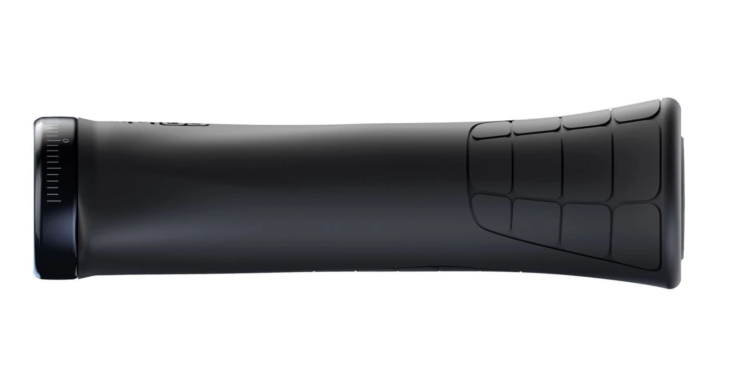Zusätzlich wurde nach allen Regeln der Kunst die äußere Auflagefläche vergrößert, damit der Komfort auf dem Level eines Flügelgriffes liegt, obwohl es keiner ist. So rund wie nötig und so flach wie möglich: Bei dem 711 Griff ist die Auflagefläche außen flach gedrückt, dadurch reduzieren sich die Druckspitzen um ein Vielfaches. Die Griffsicherheit wird durch den Ergobar unterstützt. Dies ergibt eine flächige, leicht eckige Griffunterseite und bietet den perfekten Formschluss. Dadurch kann der Griff locker geführt werden und dennoch kann das Bike immer kontrolliert werden.