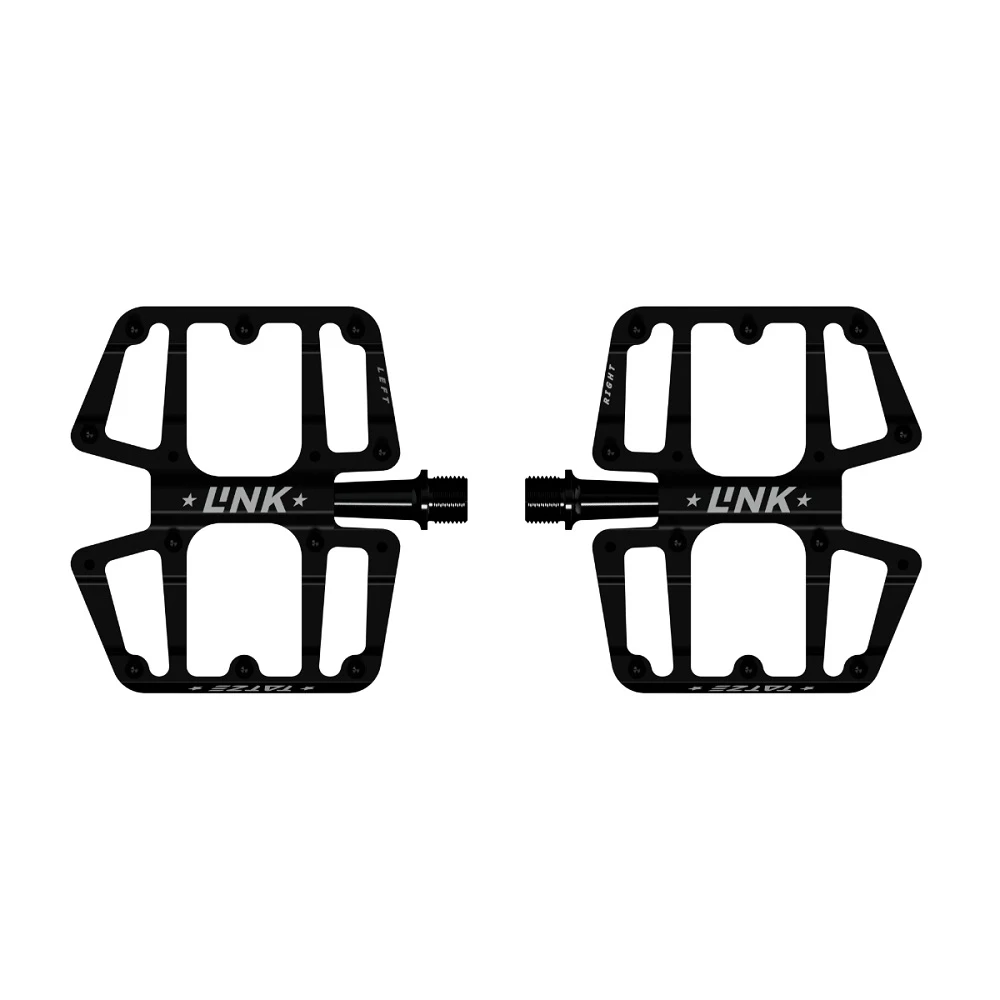Das LINK-Pedal mit Titanachse ist ein extrem dünnes Flat-Pedal. Die große Plattform mit 112cm2 (113x99mm/LxB) und 40 TATZE PINs mit gezielter Überhöhung sorgen für enormen Grip und eine gute Verbindung zwischen Pedal und Schuh. Um den Grip weiter zu erhöhen bzw. die Kontaktfläche zu maximieren, können zusätzlich 4 PINS pro Seite eingeschraubt werden. Unerwünschten Bodenkontakt vermeidet das LINK durch seine extrem dünne Bauweise, so hat der Pedalkörper an der exponierten Außenkante nur 8,8mm und damit ist das LINK eines der dünnsten Pedale auf dem Markt. Das offene Design lässt Schmutz durch das Pedal fallen und macht das Pedal mit nur 298g zum Leichtgewicht. Das LINK ist hochwertig gelagert, verbaut wird dabei ein IGUS JSM Gleitlager und 2 Kugellager. Zur Abdichtung sind 2 Doppellippendichtringe eingebaut, die die Lager vor Schmutz und Feuchtigkeit schützen. Die Lager- und Dichtungseinheit macht das Pedal nachhaltig im Sinne einer langen Lebensdauer. Zudem können Lager und Dichtungen mit dem optional erhältlichen Refresh-Kit in 5 Minuten erneuert werden, um die Uhr wieder auf 0 zu stellen.