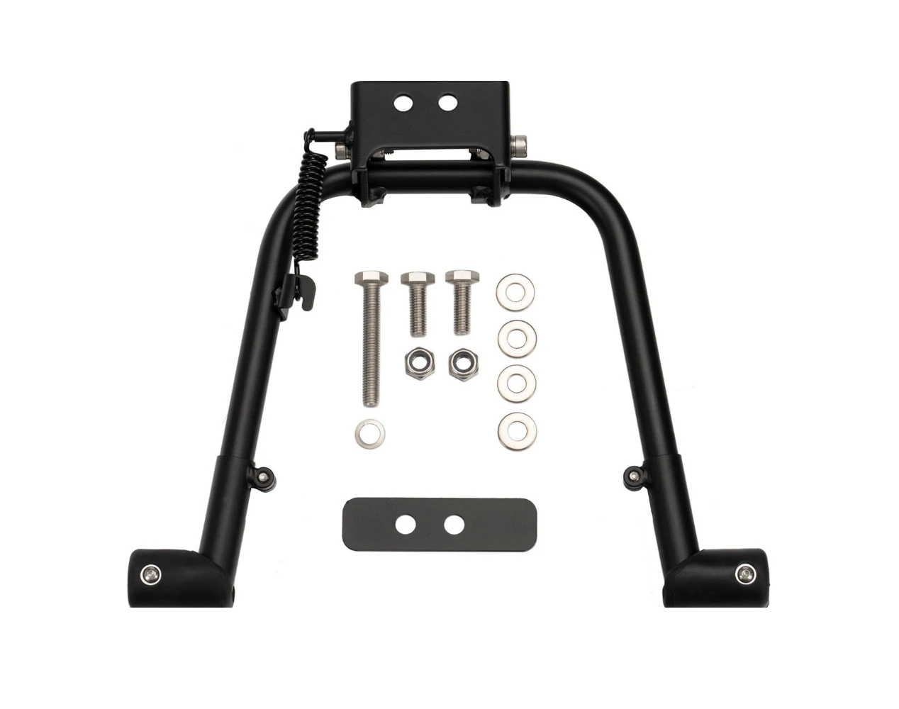 Das breite zweibeinige Design bietet zusätzliche Stabilität beim Be- und Entladen eines Passagiers oder der Ladung oder beim Parken auf unebenem Gelände. Gummifüße erhöhen die Stabilität noch weiter und schonen den Boden, während verstellbare Beine unterschiedliche Reifenbreiten (z.B. Winterreifen) aufnehmen.