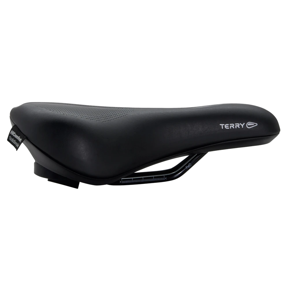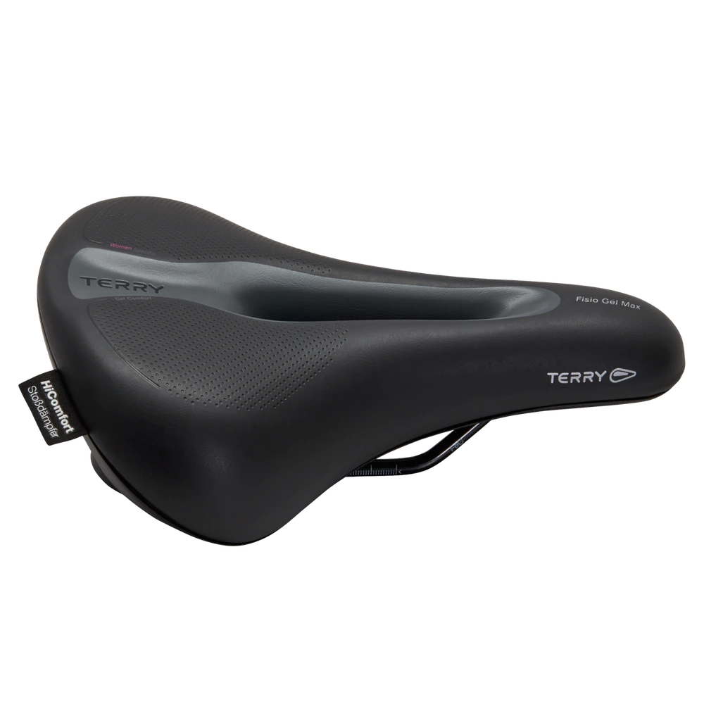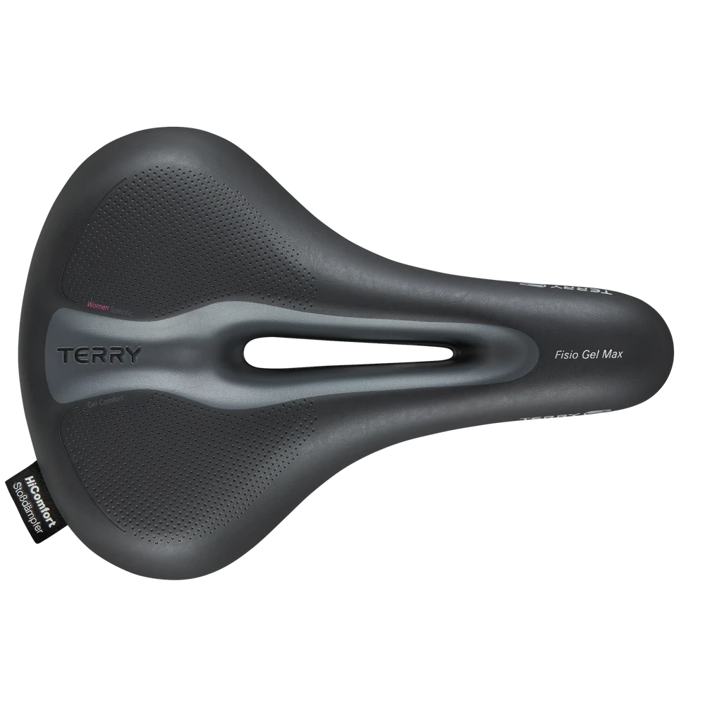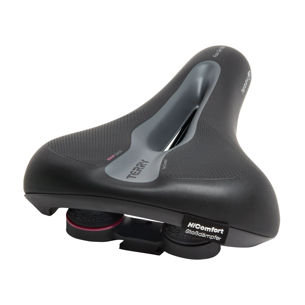 Rückenschonender Komfort-Tourensattel für Frauen mit breiter ausgelegtem Sitzbereich (inkl. ComfortGel-Polstern) bei schlankem Gesamtschnitt. Dank Terry 3-Zonen-Komfortprinzip gehört Sitzstress der Vergangenheit an. Besonders rückenschonend durch hocheffiziente Cellasto®-HiComfort Stoßdämpfer, gemeinsam entwickelt und hergestellt mit BASF® in Deutschland. Einsatz: City- und Tourenräder. Ideal für den Langstrecken- und Toureneinsatz.