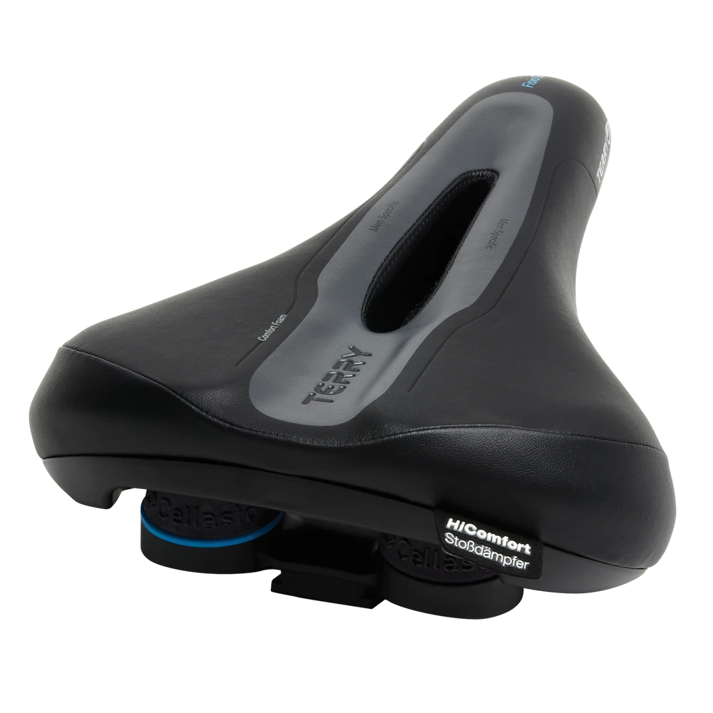 Echte Handarbeit. Rückenschonender Komfort-Tourensattel für Männer mit breiter ausgelegtem Sitzbereich bei schlankem Gesamtschnitt. Dank Terry 3-Zonen-Komfortprinzip gehört Sitzstress der Vergangenheit an. Besonders rückenschonend durch hocheffiziente Cellasto®-HiComfort Stoßdämpfer, gemeinsam entwickelt und hergestellt mit BASF® in Deutschland. Einsatz: City- und Tourenräder. Ideal für den Langstrecken- und Toureneinsatz.