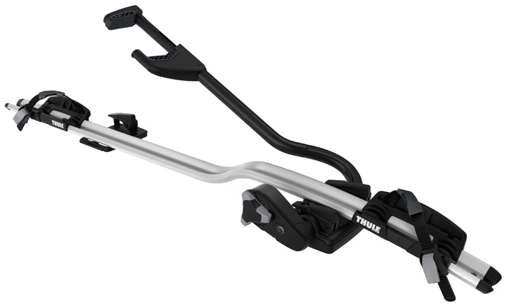 Der Thule ProRide Fahrradträger zeigt ein gelungenes Konzept aus elegantem Design gepaart mit großer Stabilität und hohem Bedienkomfort. Der Rahmenhalter kann bequem von der Ebene des Fahrzeugdaches aus über ein drehmomentgeregeltes Rädchen eingestellt werden. Durch die besonders geschwungene Form von Radschiene und Rahmenhalter wir das Fahrrad automatisch in die richtige Position gebracht.