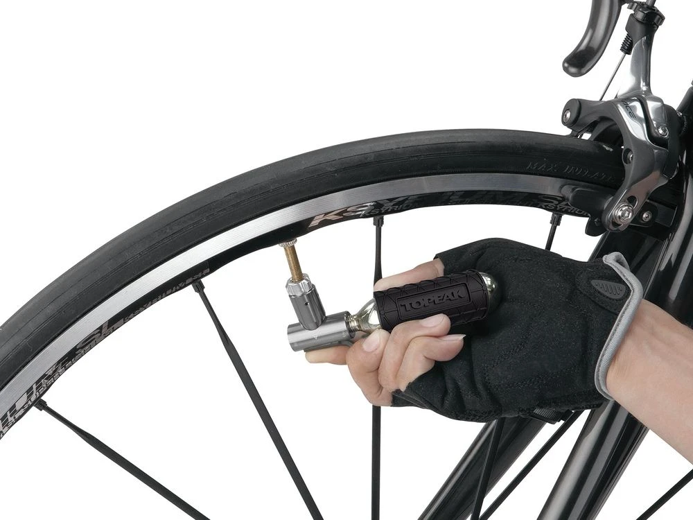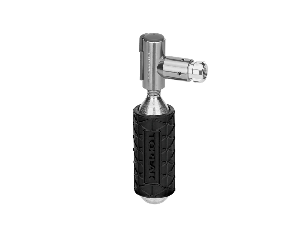 Die kleine, leichte CO₂-Kartuschenpumpe. Der aus einem Aluminiumblock gefräste CO₂-Inflator ist besonders einfach zu bedienen: AirBooster auf die CO₂-Gewindekartusche* und anschließend auf das Ventil schrauben, zum Befüllen drücken – fertig! Passend für Presta- und Schrader-Ventile. Durch das zweiseitige Design kann eine weitere Gewindekartusche zusätzlich angebracht werden. Inklusive wiederverwendbarer Silikonschutzhülle. Schützt die Hände während des Befüllens vor der kalten Kartusche.