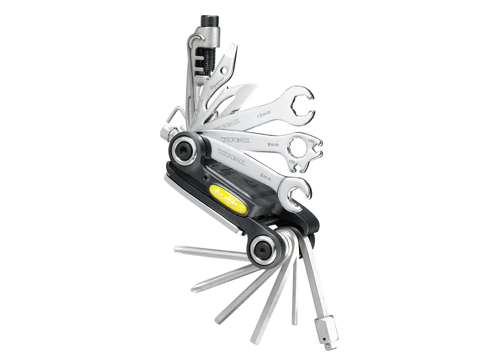 Das preisgekrönte Do-It-All Werkzeug. 31 Funktionen lassen sich aus dem leichtem, zweiteiligen Gehäuse entfalten. Die Vorspannung der Werkzeuge lässt sich dabei individuell einstellen. Inklusive einer Neoprentasche – Das perfekte Werkzeug für Fahrräder! Dank zahlreicher Ring-/Maulschlüssel ist es auch ideal für ältere Fahrräder.