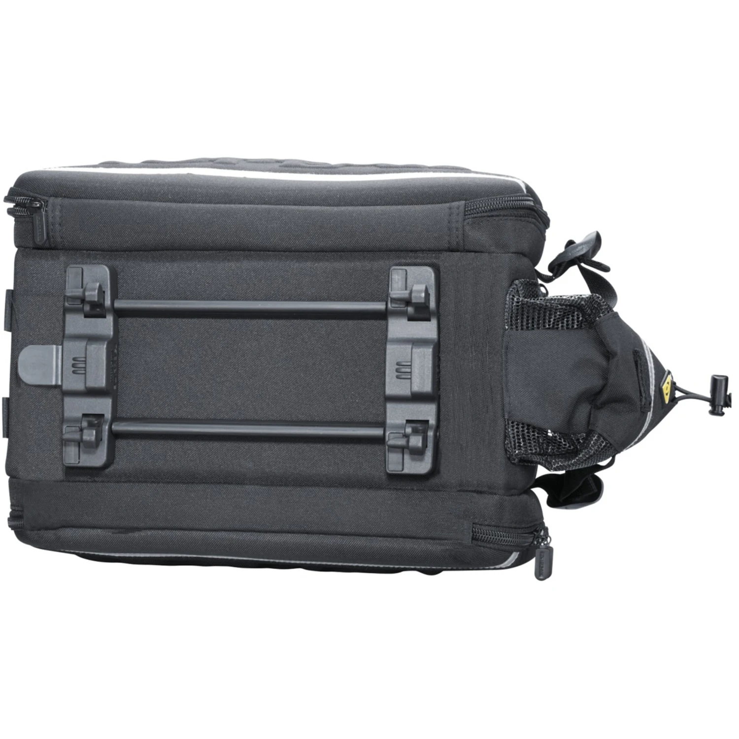 Topeaks einzigartigen Fertigungsprozesse kombinieren vorgeformte Platten mit flexiblem 600D Stoff zu einer robusten und wasserabweisenden Einheit. TrunkBag-Tasche mit einem geteilten Hauptfach, zwei Mesh-Seitentaschen für zusätzlichen Stauraum sowie einer Flaschenhalterung. Durch Klettgurt-Befestigung universell oder aber durch integrierte Montageplatte mit racktime® Snapit und KLICKfix® / racktime® Vario-Adaptern verwendbar (Adapter NICHT inklusive).