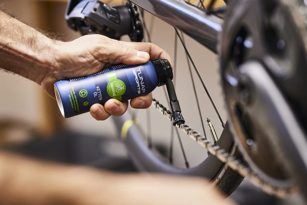 - Kette mit TUNAP SPORTS Antriebsreiniger gründlich von alten Ölresten säubern und mit Tuch trocknen.
