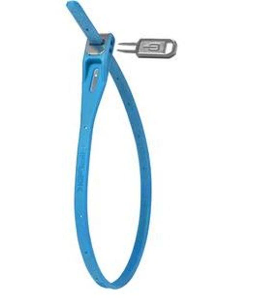 Ultraleichtes, abschließbares Sicherheitsband mit verstärktem Stahlkern.